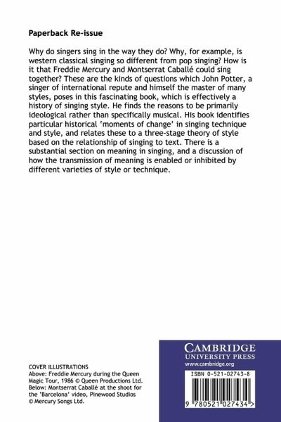 Why do singers sing in the way they do? Why, for example, is western classical singing so different from pop singing? How is it that Freddie Mercury and Montserrat Caballé could sing together? These are the kinds of questions which John Potter, a singer with the Hilliard Ensemble and Red Byrd, and himself the master of many styles, poses in this fascinating book, which is effectively a history of singing style. He finds the reasons to be primarily ideological rather than specifically musical. His book identifies particular historical 'moments of change' in singing technique and style, and relates these to a three-stage theory of style based on the relationship of singing to text. There is a substantial section on meaning in singing, and a discussion of how the transmission of meaning is enabled or inhibited by different varieties of style or technique.