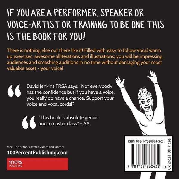 If you are a drama student, actor, performer, speaker or voice-artist or training to be one, this is the book for you! There is nothing else out there like it! Filled with easy to follow vocal warm-up exercises, awesome alliterations and illustrations; you will be impressing audiences and smashing auditions in no time without damaging your most valuable asset - your voice!