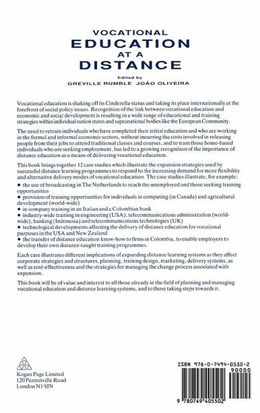 Vocational education is shaking off its Cinderella status and taking its place internationally at the forefront of social policy issues. Recognition of the link between vocational education and economic and social development is resulting in a wide range of educational and training strategies within individual nation states and supranational bodies like the European Community. The need to retrain individuals who have completed their initial education and who are working in the formal and informal economic sectors, without incurring the costs involved in releasing people from their jobs to attend traditional classes and courses, and to train those home-based individuals who are seeking employment, has led to a growing recognition of the importance of distance education as a means of delivering vocational education. This book brings together 12 case studies which illustrate the expansion strategies used by successful distance learning programmes to respond to the increasing demand for more flexibility and alternative delivery modes of vocational education. The case studies illustrate, for example the use of broadcasting in The Netherlands to reach the unemployed and those seeking training opportunities; provision of training opportunities for individuals in computing (in Canada) and agricultural development (world-wide); in-company training in an Italian and a Colombian bank; industry-wide training in engineering (USA), telecommunications administration (world-wide), banking (Indonesia) and telecommunications technologies (UK); technological developments affecting the delivery of distance education for vocational purposes in the USA and New Zealand; and the transfer of distance educationknow-how to firms in Colombia, to enable employers to develop their own distance-taught training programmes. Each case illustrates different implications of expanding distance learning systems as they affect corporate strategies and structures, planning, training design, marketing, delivery systems, as well as cost-effectiveness and the strategies for managing the change process associated with expansion. This book will be of value and interest to all those already in the field of planning and managing vocational education and distance learning systems, and to those taking steps towards it.