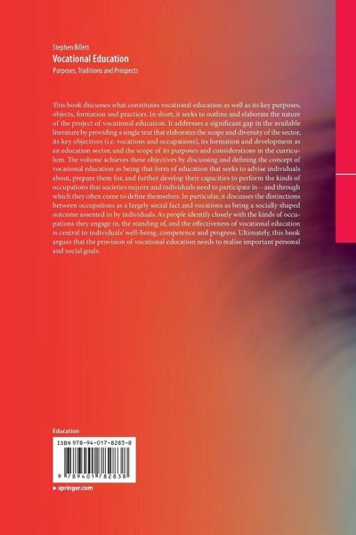 This book discusses what constitutes vocational education as well as its key purposes, objects, formation and practices. In short, it seeks to outline and elaborate the nature of the project of vocational education. It addresses a significant gap in the available literature by providing a single text that elaborates the scope and diversity of the sector, its key objectives (i.e. vocations and occupations), its formation and development as an education sector, and the scope of its purposes and considerations in the curriculum. The volume achieves these objectives by discussing and defining the concept of vocational education as being that form of education that seeks to advise individuals about, prepare them for, and further develop their capacities to perform the kinds of occupations that societies require and individuals need to participate in-and through which they often come to define themselves. In particular, it discusses the distinctions between occupations as a largely social fact and vocations as being a socially shaped outcome assented to by individuals. As people identify closely with the kinds of occupations they engage in, the standing of, and the effectiveness of vocational education is central to individuals' well-being, competence and progress. Ultimately, this book argues that the provision of vocational education needs to realise important personal and social goals.