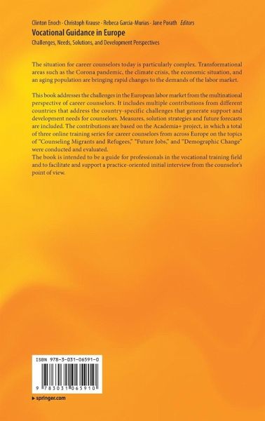 This book addresses the challenges in the European labor market from the multinational perspective of career counselors. It includes multiple contributions from different countries that address the country-specific challenges that generate support and development needs for counselors. Measures, solution strategies and future forecasts are included. The contributions are based on the Academia+ project, in which a total of three online training series for career counselors from across Europe on the topics of "Counseling Migrants and Refugees," "Future Jobs," and "Demographic Change" were conducted and evaluated.