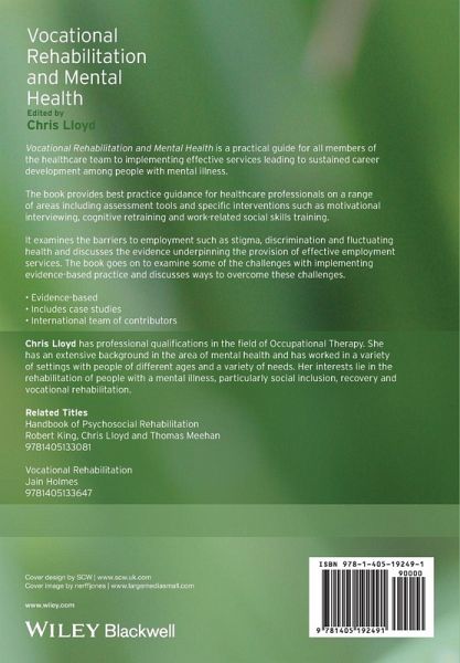 THE EDITORS Chris Lloyd has professional qualifications in the field of occupational therapy. Chris has an extensive background in the area of mental health and has worked in a variety of settings with people of different ages and a variety of needs. Her interests lie in the rehabilitation of people with a mental illness, particularly social inclusion, recovery, and vocational rehabilitation. She is currently employed as a Senior Lecturer in occupational therapy at the University of Queensland where she teaches mental health to undergraduate and postgraduate students. She is the co-author of the 'Handbook of Psychosocial Rehabilitation'. Geoff Waghorn has professional qualifications in the fields of psychology and psychiatry. Geoff has an extensive background in vocational rehabilitation for people with psychiatric disabilities in particular. He has worked for a large provider of Australian Government funded vocational rehabilitation services. Geoff is currently employed as a Senior Scientist for the Queensland Centre for Mental Health Research, where he leads the Vocational Rehabilitation stream within the Policy and Economics Group. This research aims to improve functional recovery and vocational rehabilitation outcomes for people with mental illness.