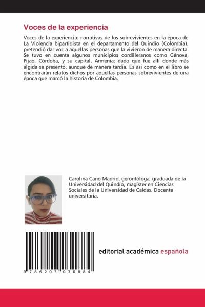 Voces de la experiencia: narrativas de los sobrevivientes en la época de La Violencia bipartidista en el departamento del Quindío (Colombia), pretendió dar voz a aquellas personas que la vivieron de manera directa. Se tuvo en cuenta algunos municipios cordilleranos como Génova, Pijao, Córdoba, y su capital, Armenia; dado que fue allí donde más álgida se presentó, aunque de manera tardía. Es así como en el libro se encontrarán relatos dichos por aquellas personas sobrevivientes de una época que marcó la historia de Colombia.