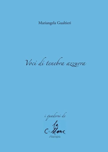 Mariangela Gualtieri ha il pregio di saper portare sulla scena testi in grado di arrivare subito al pubblico essendo insieme impeccabili sul piano formale, perfettamente compiuti nell'energia di una parola autenticamente poetica. E infatti "Voci di tenebra azzurra" è un'opera di pura poesia, nata in forma di intensi monologhi per il teatro, ma perfettamente fruibile sulla pagina. Un'opera carica di vitalità espressiva eppure trasparente e comunicativa. Gualtieri si rifà in questo testo anche a figure e voci di grandi autori, a partire dal suo conterraneo Giovanni Pascoli, ma osserva, non di meno, sensibilmente il destino dell'essere umano anche in rapporto alla realtà e alle innumerevoli contraddizioni del nostro tempo. Su tutto agisce e domina l'importanza impareggiabile della parola. Una parola che ci si offre nelle sue molteplici aperture, parola dunque scritta, ma non di meno da pronunciare, da recitare. E da leggere e ascoltare, in un mondo 'sempre pieno di ombre e di attese'.