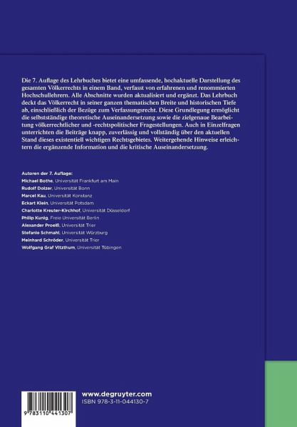 Die 7. Auflage des Lehrbuches bietet wiederum eine umfassende, hochaktuelle Darstellung des gesamten Völkerrechts - des Friedens- und des Kriegsrechts sowie des Rechts der Internationalen und die Supranationalen Organisationen - in einem Band, von erfahrenen und renommierten Hochschullehrern verfaßt.