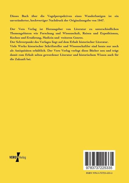 Dieses Buch über die Vogelperspektiven eines Wanderlustigen ist ein unveränderter, hochwertiger Nachdruck der Originalausgabe von 1847.