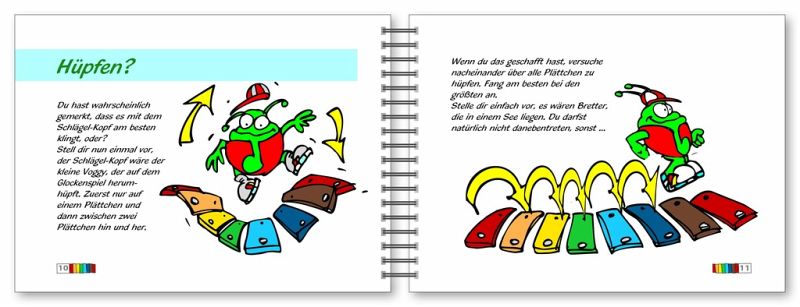 Bereits nach kurzer Zeit können mit Hilfe von Voggy¿s Glockenspiel-Schule einfache Volks- und Kinderlieder gespielt werden. Alle benötigten musikalischen Grundlagen werden kindgerecht erklärt, indem eine farbliche Verbindung zwischen den Noten und den Klangplatten hergestellt wird. So macht dieses Büchlein nicht nur eine Menge Spaß, sondern legt zugleich auch eine solide musikalische Grundlage. Alle Lieder sind außerdem auf der beiliegenden CD (auch als Audio-Download) als Hörbeispiel und Mitspielvorlage enthalten. DIN A5 Querformat mit Spiralbindung, farbig, 80 Seiten, mit CD und Audio-Download