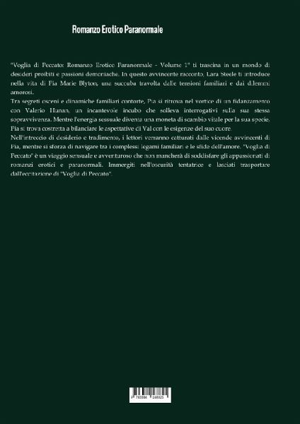 "Voglia di Peccato: Romanzo Erotico Paranormale - Volume 1" ti trascina in un mondo di desideri proibiti e passioni demoniache. In questo avvincente racconto, Lara Steele ti introduce nella vita di Pia Marie Blyton, una succuba travolta dalle tensioni familiari e dai dilemmi amorosi.Tra segreti osceni e dinamiche familiari contorte, Pia si ritrova nel vortice di un fidanzamento con Valerio Hunan, un incantevole incubo che solleva interrogativi sulla sua stessa sopravvivenza. Mentre l'energia sessuale diventa una moneta di scambio vitale per la sua specie, Pia si trova costretta a bilanciare le aspettative di Val con le esigenze del suo cuore.Nell'intreccio di desiderio e tradimento, i lettori verranno catturati dalle vicende avvincenti di Pia, mentre si sforza di navigare tra i complessi legami familiari e le sfide dell'amore. "Voglia di Peccato" è un viaggio sensuale e avventuroso che non mancherà di soddisfare gli appassionati di romanzi erotici e paranormali. Immergiti nell'oscurità tentatrice e lasciati trasportare dall'eccitazione di "Voglia di Peccato".