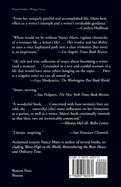 Voice Lessons is a book about writing from a woman with a remarkable story to tell and an utterly distinctive voice in which to tell it. Nancy Mairs's essays have been called "triumphs... of will, style, candor, thought and even form" (Los Angeles Times). She has won acclaim for her autobiographical writing on themes from living with depression to renewing a marriage, from sex to religion. In Voice Lessons, Mairs's subjects are literary, but as always her approach is personal, revealing, and inspiring. Mairs first shares her sharply drawn story on how "finding a voice" as an essayist transformed her life when she was a graduate student, wife, and mother in her late thirties. In a tribute to the liberating power of literature and feminist ideas, she shows how the words of other writers made possible a new career, a new life in difficult times. Voice Lessons goes on to explore other women's writing and to outline a singular kind of literary life. Always grounding her writing in personal experience, always making ideas concrete, Mairs gives us essays on writing and the body, the challenges of autobiography, the revelatory power of Virginia Woolf and Alice Walker, the literature of personal disaster, and the art of dealing with rejection. Articulate, witty, incisive, and inspirational, Voice Lessons is a book for writers and aspiring writers, and for everyone who loves women's writing.