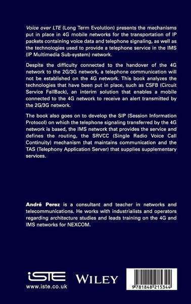 Voice over LTE (Long Term Evolution) presents the mechanisms put in place in 4G mobile networks for the transportation of IP packets containing voice data and telephone signaling, as well as the technologies used to provide a telephone service in the IMS (IP Multimedia Sub-system) network.