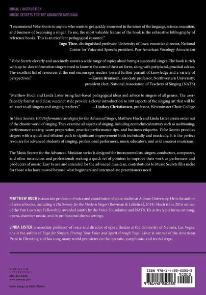 Matthew Hoch and Linda Lister examine all aspects of singing, including nontechnical matters, such as auditioning, performance anxiety, score preparation, practice performance tips, business etiquette, and many other important topics for the advanced singer.