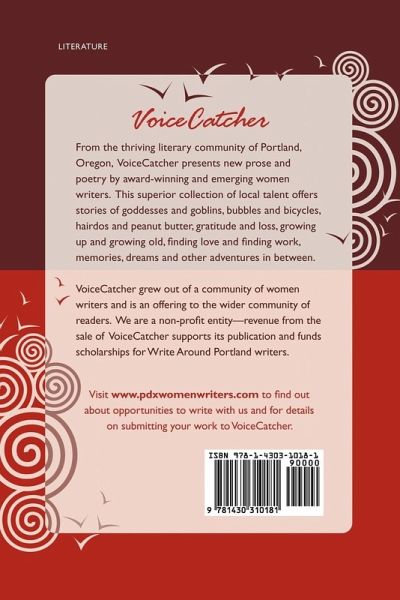 From the thriving literary community of Portland, Oregon, VoiceCatcher presents new prose and poetry by award-winning and emerging women writers. This eclectic collection offers stories of bubbles and bicycles, hairdos and peanut butter, gratitude and loss, growing up and growing old, finding love and finding work, memories, dreams and other adventures in between. VoiceCatcher grew out of a community of women writers and is an offering to the wider community of readers. We are a non-profit entity - revenue from the sale of VoiceCatcher support its publication and funds scholarships for Write Around Portland writers.