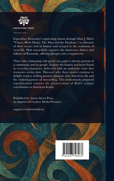 Experience Kentucky's captivating charm through Matt J. Holt's "Voices; Birth-Marks; The Man and the Elephant," a collection of short stories rich in humor and steeped in the traditions of rural life. Holt masterfully captures the distinctive dialect and folklore of Kentucky, offering glimpses into a bygone era. These tales, brimming with gentle wit, paint a vibrant portrait of a community and its people. Explore the humor and heart found in everyday situations, delivered with an authentic voice that resonates across time. Discover why these stories continue to delight readers seeking genuine glimpses into American life and the enduring power of storytelling. This meticulously prepared republication ensures the preservation of Holt's unique contribution to American fiction. This work has been selected by scholars as being culturally important, and is part of the knowledge base of civilization as we know it. This work is in the public domain in the United States of America, and possibly other nations. Within the United States, you may freely copy and distribute this work, as no entity (individual or corporate) has a copyright on the body of the work. Scholars believe, and we concur, that this work is important enough to be preserved, reproduced, and made generally available to the public. We appreciate your support of the preservation process, and thank you for being an important part of keeping this knowledge alive and relevant.