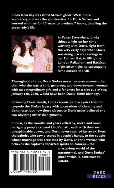 Linda Dearsley was Doris Stokes' ghost. Well, more accurately, she was the ghost-writer for Doris Stokes and worked with her for 10 years to produce 7 books, detailing the great lady's life. In Voices Everywhere, Linda shines a light on her time working with Doris, right from the very early days when Doris was doing private readings in her Fulham flat, to filling the London Palladium and Barbican night after night, to subsequent fame outside the UK. Throughout all this, Doris Stokes never became anyone other than who she was: a kind, generous, and down-to-earth woman with an extraordinary gift, and a fondness for a nice cup of tea. January 6th, 2020, would have been Doris' 100th birthday. Following Doris' death, Linda chronicles how cynics tried to torpedo the Stokes legacy with accusations of cheating and dishonesty, but how those closest to Doris never believed she was anything other than genuine. In turn, as the months and years rolled by, more and more intriguing people crossed Linda's path, each with their own unexplainable power, and Doris never seemed far away. From the palmist who saw pictures in people's hands, to the couple whose marriage was predicted by Doris, and the woman who believes she captures departed spirits on camera - the mysterious world of the paranormal, and Doris Stokes' place within it, continues to unfold.