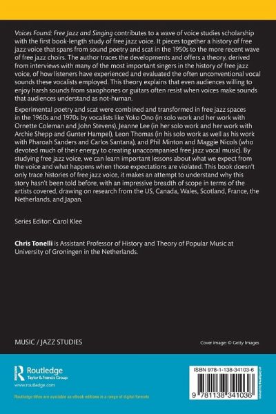Voices Found: Free Jazz and Singing contributes to a wave of voice studies scholarship with the first book-length study of free jazz voice. It pieces together a history of free jazz voice that spans from sound poetry and scat in the 1950s to the more recent wave of free jazz choirs. The author traces the developments and offers a theory, derived from interviews with many of the most important singers in the history of free jazz voice, of how listeners have experienced and evaluated the often unconventional vocal sounds these vocalists employed. This theory explains that even audiences willing to enjoy harsh sounds from saxophones or guitars often resist when voices make sounds that audiences understand as not-human.