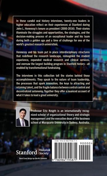 In these candid oral history interviews, twenty-one leaders in higher education re¿ect on their experiences at Stanford during John L. Hennessy's tenure as president (2000-2016). Their stories illuminate the struggles and opportunities, the strategies, and the decision-making process of an exceptional leader and his team during both a golden age and a time of challenge for one of the world's greatest research universities. Hennessy and his team put in place interdisciplinary structures that rede¿ned the research landscape, reimagined the student experience, expanded medical research and clinical services, and oversaw the largest building program in Stanford history-all enabled by transformational fundraising. The interviews in this collection tell the stories behind those accomplishments. They speak to the nature of team leadership, the processes that spark innovation, the keys to attracting and retaining talent, and the fragile balance between central control and decentralized autonomy. Together they offer a nuanced account of what it takes to lead a great university.