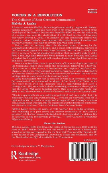 Afeatured article in Die Zeit, the leading German weekly, begins with "Melvin, du hast gewonnen"--Mel, you have won! In his extraordinary account of the final days of the German Democratic Republic (DDR) we see the reckoning of a regime, and also the vindication of a life-long devotee of European democracy
