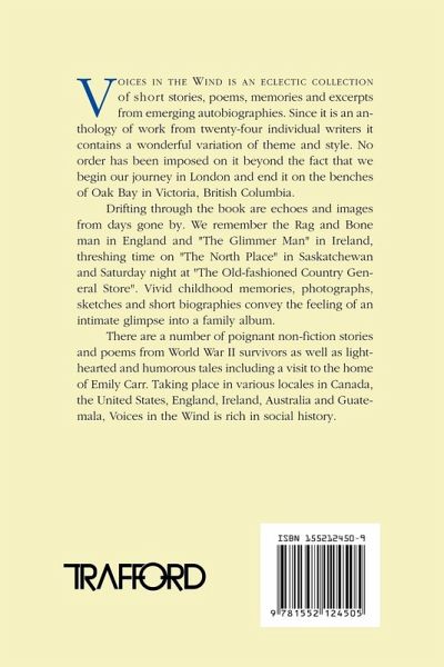 The 24 authors of the segments which make up Voices in the Wind are all regulars of the Oak Bay Seniors Activity Association, located in Victoria, British Columbia.