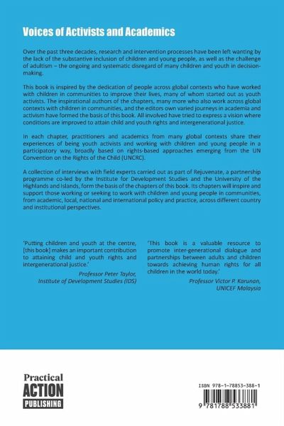 In each chapter, practitioners and academics from many global contexts share their experiences of being youth activists and working with children and young people in a participatory way, broadly based on rights-based approaches emerging from the UN Convention on the Rights of the Child (UNCRC).