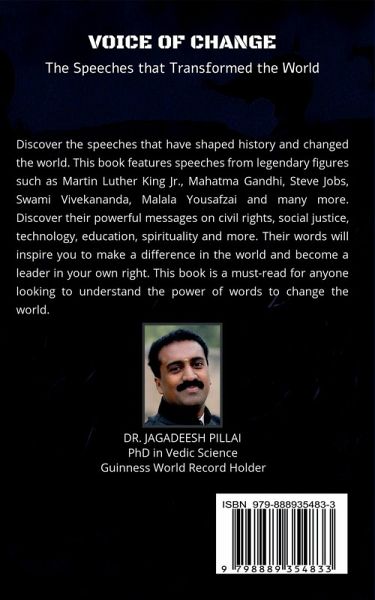 The speeches of legends around the world have always had the power to inspire and galvanize. Throughout history, there have been individuals who, through their words and actions, have left an indelible mark on the world. This book brings together some of the most impactful and inspiring speeches of legends from around the globe. From Martin Luther King Jr.'s powerful speeches on civil rights and nonviolence to Mahatma Gandhi's eloquent speeches on Indian independence and the power of peaceful resistance. From Steve Jobs' captivating keynotes on technology and innovation to Swami Vivekananda's enlightening speeches on spirituality and the power of the human mind. And from Malala Yousafzai's courageous speeches on education and women's rights to many more. The speeches in this book were given at different times, in different places, and for different purposes, but they all share one common theme: the power of the human spirit to effect change. In this book, you will find speeches that address a wide range of issues, from civil rights and social justice to technology and education. Through these speeches, you will come to understand the depth of the passion and conviction that motivated these legends to fight for the causes they believed in, and the ways in which their words helped to shape the world we live in today.
