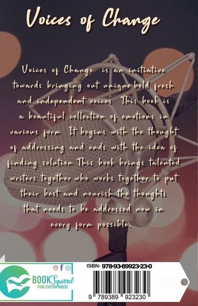"Voices of Change" is an initiative towards bringing out unique, bold, fresh and independent voices. This book is a beautiful collection of emotions in various form. It begins with the thought of addressing and ends with the idea of finding solution. This book brings talented writers together, who works together to put their best and nourish the thoughts that needs to be addressed now in every form possible.