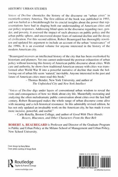 [FOR HISTORY CATALOGS]Drawing on the pronouncements of public commentators, this book portrays the 20th century history of U.S. cities, focusing specifically on how commentators crafted a discourse of urban decline and prosperity peculiar to the post-World War II era. The efforts of these commentators spoke to the foundational ambivalence Americans have toward their cities and, in turn, shaped the choices Americans made as they created and negotiated the country's changing urban landscape. [FOR GEOG/URBAN CATALOGS]Freely crossing disciplinary boundaries, this book uses the words of those who witnessed the cities' distress to portray the postwar discourse on urban decline in the United States. Up-dated and substantially re-written in stronger historical terms, this new edition explores how public debates about the fate of cities drew from and contributed to the choices made by households, investors, and governments as they created and negotiated America's changing urban landscape.