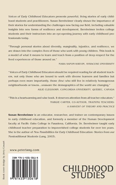 Voices of Early Childhood Educators presents powerful, living stories of early childhood students and practitioners. Susan Bernheimer clearly shows the importance of their stories for understanding the challenges now facing our field, including valuable insights into new forms of resilience and development. Bernheimer invites college students and their instructors into an eye-opening journey with early childhood professionals today.