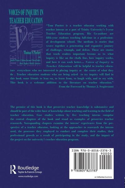 This book is an attempt to show that preservice teacher knowledge is substantive and should be part of the wider database of knowledge about teaching and learning in the field of teacher education. From the perspectives of five prospective teacher interns and a teacher educator, this volume brings the experiences of students conducting research during preservice teacher education to life. Charged to conduct a semester long study in the school, the intern-authors studied classroom scenes and their own work, and wrote case studies depicting their experiences. Their pieces -- in their entirety -- compose the central chapters of the book and serve as examples of preservice teacher research. The surrounding chapters examine the interns' experiences of conducting research during their preservice internship year primarily from the perspective of a teacher educator who studied them and the scene throughout the experience. The teacher educator examines the interns' approaches to research and the processes they employed to conduct and complete their studies, the interns' professional growth as a result of their participation in the study, and the impact the project had on the program. This book fills the gaps that exist in the present literature on the use of teacher research during preservice by including the inquiry works of preservice teachers as examples of legitimate, important preliminary research in their own rights, and by addressing the complex issues of conducting this type of study during preservice from multiple perspectives, not just that of the university researcher. While some texts include the perspectives of students and even include portions of students' own work, this text takes the step of co-authorship, sharing the academic discourse with intern teachers who have produced experience and knowledge that are informative for the field of education as a whole and specifically for teacher education. The text attempts to combine many voices into one thorough, narrative approach, ultimately urging the reader to consider the possibilities of teacher research for advancing knowledge in the field and for enhancing the professional development of the participants.
