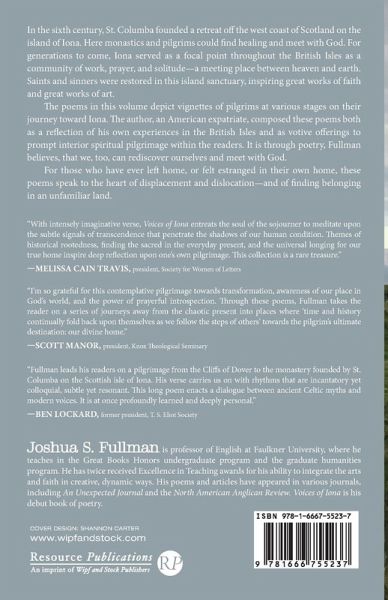 In the sixth century, St. Columba founded a retreat off the west coast of Scotland on the island of Iona. Here monastics and pilgrims could find healing and meet with God. For generations to come, Iona served as a focal point throughout the British Isles as a community of work, prayer, and solitude--a meeting place between heaven and earth. Saints and sinners were restored in this island sanctuary, inspiring great works of faith and great works of art. The poems in this volume depict vignettes of pilgrims at various stages on their journey toward Iona. The author, an American expatriate, composed these poems both as a reflection of his own experiences in the British Isles and as votive offerings to prompt interior spiritual pilgrimage within the readers. It is through poetry, Fullman believes, that we, too, can rediscover ourselves and meet with God. For those who have ever left home, or felt estranged in their own home, these poems speak to the heart of displacement and dislocation--and of finding belonging in an unfamiliar land.
