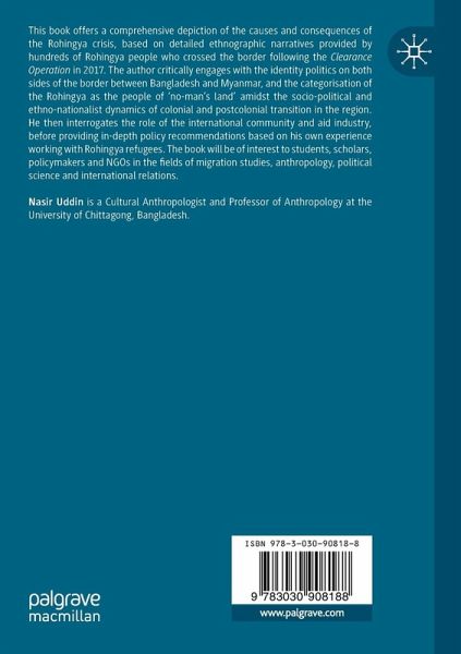 This book offers a comprehensive depiction of the causes and consequences of the Rohingya crisis, based on detailed ethnographic narratives provided by hundreds of Rohingya people who crossed the border following the Clearance Operation in 2017. The author critically engages with the identity politics on both sides of the border between Bangladesh and Myanmar, and the categorisation of the Rohingya as the people of 'no-man's land' amidst the socio-political and ethno-nationalist dynamics of colonial and postcolonial transition in the region. He then interrogates the role of the international community and aid industry, before providing in-depth policy recommendations based on his own experience working with Rohingya refugees. The book will be of interest to students, scholars, policymakers and NGOs in the fields of migration studies, anthropology, political science and international relations.