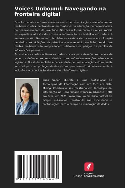 Este livro analisa a forma como os meios de comunicação social afectam as mulheres curdas, centrando-se no comércio, na educação, na comunidade e no desenvolvimento da juventude. Destaca a forma como as redes sociais as capacitam através do acesso à informação, ao trabalho em rede e à auto-expressão. No entanto, também as expõe a riscos como a exploração de dados, as violações da privacidade e o assédio em linha, sendo que muitas mulheres não compreendem totalmente os perigos da partilha de informações pessoais.As mulheres curdas utilizam as redes sociais para desafiar os papéis de género e defender os seus direitos, mas enfrentam reacções adversas e vigilância. O estudo sublinha a necessidade de uma educação culturalmente sensível para as proteger destes riscos, promovendo simultaneamente a inclusão e a capacitação através das plataformas digitais.