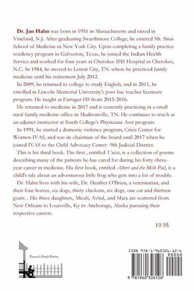 To the Reader The structure of this work is quite straightforward. In a sparsely furnished family physician's office, patients arrive alone to tell their story. What is important to this doctor? Only that which is important to his patients - nothing more and nothing less. Some come once, never to return. Others frequent his office repeatedly as they struggle to make sense of what has befallen them. None come for judgment; a few for advice; but all simply to be heard. On the left facing page are notations of several types: VOICE OVER - introduces the speaker &- commentary on how the poem is to be read &&- personal reflections of the writer on the meaning of the poem Readers may very well wonder if each poem represents a single patient. In a few instances, this is the case. But most of them are composites based upon repeated contact with people who have contended, in their unique ways, with common crises. I have been privileged to have had no less than 150,000 patient encounters (100 patients per week - 50 weeks per year - 30 years). Despite our differences, at the end of the day, we confront the same basic issues of life and living.