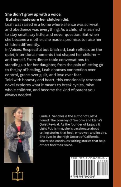 She didn't grow up with a voice. But she made sure her children did. Leah was raised in a home where silence was survival and obedience was everything. As a child, she learned to stay small, say little, and never question. But when she became a mother, she made a promise: to raise her children differently. In Voices: Respectful but Unafraid, Leah reflects on the quiet, intentional moments that shaped her children-and herself. From dinner table conversations to standing up for her daughter, from the pain of letting go to the joy of healing, Leah chooses connection over control, grace over guilt, and love over fear. Told with honesty and heart, this emotionally resonant book explores what it means to break cycles, raise whole children, and become the kind of parent you always needed.