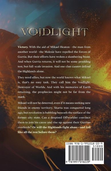 Victory. With the aid of Mikael Heaton-the man from another world-the Highland clans have repelled the forces of Gurria. But their efforts have woken a slumbering beast. When Gurria returns, it will not be with a mere hundred soldiers, but legions. The Highlands need allies, but now the world knows what Mikael is, that's no easy task. The seers call him the Voidlight. Destroyer of Worlds. And with his memories of Earth returning, their prophecies may not be far off the mark. Mikael will not be deterred, even if it means seeking new friends in enemy territory. Skarta was conquered long ago, but revolution is bubbling beneath the city's surface. Can a despised Offworlder convince them to join his cause and rise up against their Gurrian overlords? Or will the Highlands fight alone-and fall like all the rest?