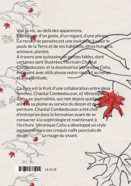 Voir la vie, au-delà des apparences.S'émouvoir d'un geste, d'un regard, d'une phrase.Ce recueil de pensées est une invitation à saisir le pouls de la Terre et de ses habitants, êtres humains, animaux, plantes.A travers une quinzaine de petites fables, dont certaines sont illustrées, l'écrivain Chantal Combedouzon, et la dessinatrice Véronique Cohu, évoquent avec délicatesse notre rapport au temps et à la plénitude.