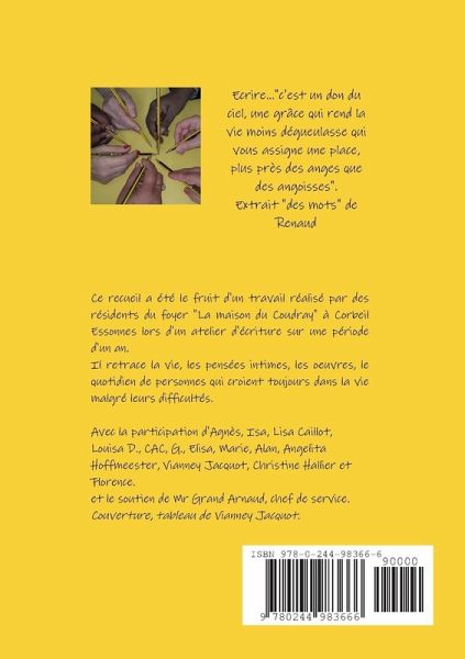 ce recueil regroupe des textes écrits lors d'un atelier d'écriture sur une période d'un an. Chaque semaine un thème était donné. Chacun s'est exprimé à sa manière.