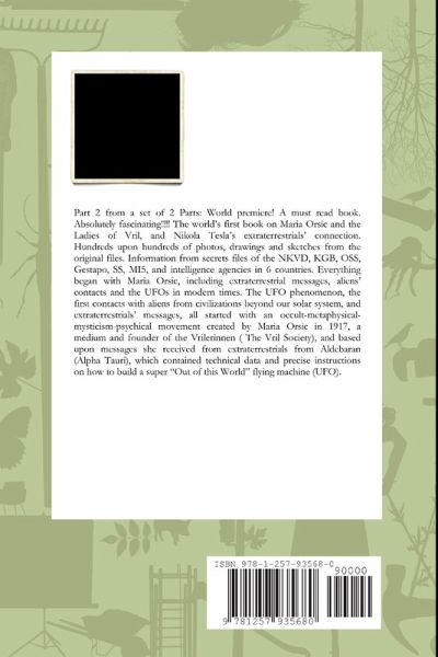 Part 2 from a set of 2 Parts: World premiere! A must read book. Absolutely fascinating!!!! The world's first book on Maria Orsic and the Ladies of Vril, and Nikola Tesla's extraterrestrials' connection. Hundreds upon hundreds of photos, drawings and sketches from the original files. Information from secrets files of the NKVD, KGB, OSS, Gestapo, SS, MI5, and intelligence agencies in 6 countries. Everything began with Maria Orsic, including extraterrestrial messages, aliens' contacts and the UFOs in modern times. The UFO phenomenon, the first contacts with aliens from civilizations beyond our solar system, and extraterrestrials' messages, all started with an occult-metaphysical-mysticism-psychical movement created by Maria Orsic in 1917, a medium and founder of the Vrilerinnen ( The Vril Society), and based upon messages she received from extraterrestrials from Aldebaran (Alpha Tauri), which contained technical data and precise instructions on how to build a super "Out of this World" flying machine (UFO).