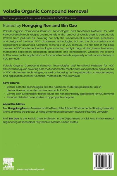 Volatile Organic Compound Removal: Technologies and Functional Materials for VOC Removal details technologies and materials for the removal of volatile organic compounds (VOCs) from polluted air, covering not only the fundamental mechanisms, processes, and designs of the latest VOC abatement technologies, but also the characteristics and applications of advanced functional materials for VOC removal. The first half of this book centers on VOC abatement technologies including catalytic degradation, thermal oxidation, membrane separation, adsorption, absorption, and condensation, whereas the second half focuses on the applications of functional materials, especially novel nanomaterials, in VOC removal. Volatile Organic Compound Removal: Technologies and Functional Materials for VOC Removal is unique in covering both the fundamental mechanisms and practical applications of VOC abatement technologies, as well as focusing on the preparation, characterization, and application of novel functional materials for VOC removal.