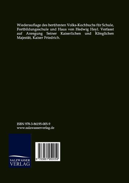 Wiederauflage des berühmten Volks-Kochbuchs für Schule, Fortbildungsschule und Haus von Hedwig Heyl. Verfasst auf Anregung Ihrer Kaiserlichen und Könglichen Majestät, Kaiserin Friedrich.