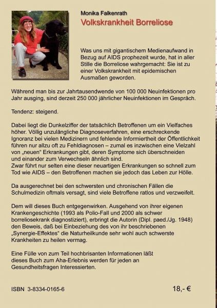 Dieser Erfahrungsbericht stellt nicht nur für Borreliose-Kranke, sondern auch für von anderen neuartigen Erkrankungen wie CMS, MS, MCS, Fibromyalgie usw. Betroffene einen ermutigenden Lichtblick dar.