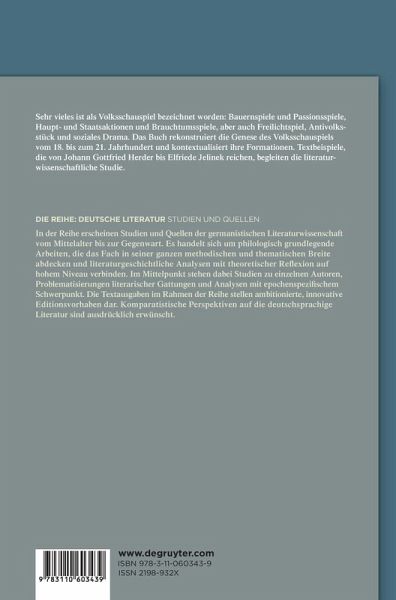 Volksschauspiele waren seit Jahrzehnten kein Thema der Literatur- und Theaterwissenschaft mehr. Anders auch als die ältere Volksstück- und Volksschauspielforschung des 20. Jahrhunderts nimmt dieses Buch sehr unterschiedliche Verständnisweisen von Volksschauspiel und Volksstück synoptisch in den Blick: Bauernstücke und Passionsspiele, patriotisches Nationaltheater und militärisches Propagandastück des späten 18. Jahrhunderts, Legendenspiel, Ritterspektakel und Brauchtumsspiel des 19. Jahrhunderts, aber auch Massenfestspiel, Thingspiel, Agit-Prop- und Arbeitertheater, Antivolksstück und soziales Drama des 20. Jahrhunderts. Das Buch rekonstruiert die Genese des Volksschauspiels vom 18. bis zum 21. Jahrhundert und verortet die unterschiedlichen Formationen in ihren jeweiligen literarischen und theatergeschichtlichen Kontexten. Es gibt Antwort auf die Fragen, ob und inwiefern Volksschauspiel als Idee, Dramengattung oder Behauptung gelten kann. Kommentierte Textbeispiele, die von Johann Gottfried Herder bis Elfriede Jelinek reichen, begleiten die literaturwissenschaftliche und dramenkundliche Studie.