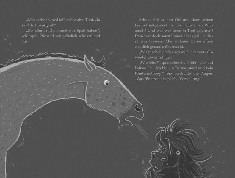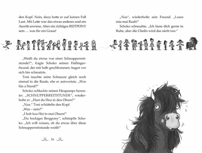 Den ganzen Tag in der Sonne liegen, jede Menge Heu mampfen und ab und zu ein Ausritt mit seinem Lieblingsmenschen Lotte - besser könnte das Leben auf dem Blümchenhof für Schoko nicht laufen. Wenn nur die Chefin sich nicht in den Kopf gesetzt hätte, dass die Ponys ab sofort bei Reitstunden mitmachen sollen ... Wie bescheuert ist es denn bitte, als langweiliges Reitpony herumzumarschieren? Aber da hat sie die Rechnung ohne Schoko gemacht: Das wird er schon zu verhindern wissen!