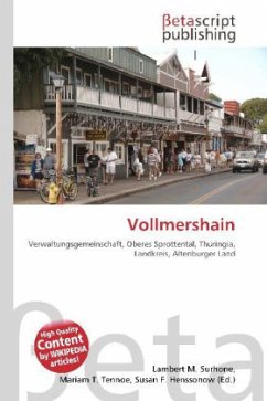 Please note that the content of this book primarily consists of articles available from Wikipedia or other free sources online. Vollmershain is a town in the Verwaltungsgemeinschaft of Oberes Sprottental in the Thuringian landkreis of Altenburger Land in Germany.The village of Vollmershain is located along 4 km of the Sprotte. The highest part of the community is 306.2 m high on the side of the Mühlberg (308.1 m).Other municipalities near Vollmershain are Heukewalde, Jonaswalde, Posterstein, Nöbdenitz, Thonhausen, and the Weißbach district of Schmölln in the Landkreis of Altenburger Land.