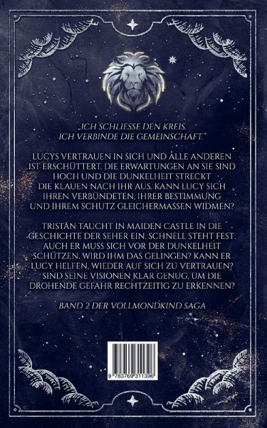 Die spannende Fortsetzung einer Geschichte über Freunde, Schutz und Verrat Der 2. Teil der Jugendbuch Reihe ist die Fortsetzung von Vollmondkind - Vertrauen finden. Die Geschichte wird sowohl aus Lucys als auch Tristans Perspektive erzählt. Dieser spannende, emotionale und berührende Urban Fantasy Roman nimmt dich mit in eine Welt voller Gefahren, verschollener Geheimnisse und verborgener Gaben. Lucy gewöhnt sich an ihr Leben als mächtiges Vollmondkind. Das neue Schuljahr bringt eine unerwartete Freundschaft, ungelöste Rätsel und viele Probleme. Erneut wirft der Mond mehr Fragen auf, als dass er Antworten bringt. Jeder Unbekannte, der in Lucys Nähe kommt, stellt eine mögliche Gefahr dar. Die Hüter haben hohe Erwartungen an sie und ihre Fähigkeit. Sie soll sich ihren Verbündeten, der Bestimmung und ihrem Schutz gleichermaßen widmen. Aber zuerst muss Lucy lernen, sich wieder selbst zu vertrauen. Doch die Zeit wird knapp. Tristan hat Jeremys Angebot angenommen und verbringt ein Auslandsjahr in Maiden Castle. Dort taucht er in die Geschichte der Seher ein. Doch in der Vergangenheit lauern tragische Schicksalsschläge und weitere Grausamkeiten der Dunkelheit. Tristan lernt mit seiner Fähigkeit umzugehen. Der Kreis seiner Verbündeten wächst, genau wie sein Geschick, die Visionen zu lenken. Schnell steht fest: Auch er muss sich schützen. Wird im das gelingen? Die Dunkelheit ist nicht untätig. Vincent sammelt seine Mitstreiter und plant im Verborgenen den nächsten Angriff. Sind Tristans Visionen klar genug, um die drohende Gefahr rechtzeitig zu erkennen? Vertraut Lucy ihm bereits, um auf seine Warnung zu hören? Perfekt für Jugendliche ab 12 und alle, die Fantasy mögen. Hol dir noch heute die Fortsetzung von "Vollmondkind - Vertrauen finden" und begleite Lucy auf ihr nächstes Abenteuer. Der Original-Klappentext - kurz & knapp: Ich schließe den Kreis. Ich verbinde die Gemeinschaft. Lucys Vertrauen in sich und alle anderen ist erschüttert. Die Erwartungen an sie sind hoch und die Dunkelheit streckt die Klauen nach ihr aus. Kann Lucy sich ihren Verbündeten, ihrer Bestimmung und ihrem Schutz gleichermaßen widmen? Tristan taucht in Maiden Castle in die Geschichte der Seher ein. Schnell steht fest: Auch er muss sich vor der Dunkelheit schützen. Wird ihm das gelingen? Kann er Lucy helfen, wieder auf sich zu vertrauen? Sind seine Visionen klar genug, um die drohende Gefahr rechtzeitig zu erkennen? Fortsetzung der Vollmondkind Saga