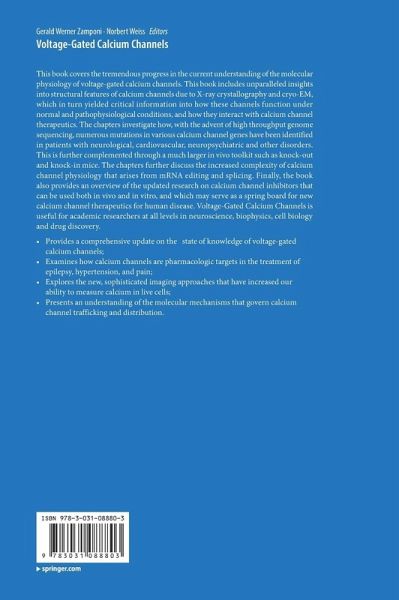 This book covers the tremendous progress in the current understanding of the molecular physiology of voltage-gated calcium channels. This book includes unparalleled insights into structural features of calcium channels due to X-ray crystallography and cryo-EM, which in turn yielded critical information into how these channels function under normal and pathophysiological conditions, and how they interact with calcium channel therapeutics. The chapters investigate how, with the advent of high throughput genome sequencing, numerous mutations in various calcium channel genes have been identified in patients with neurological, cardiovascular, neuropsychiatric and other disorders. This is further complemented through a much larger in vivo toolkit such as knock-out and knock-in mice. The chapters further discuss the increased complexity of calcium channel physiology that arises from mRNA editing and splicing. Finally, the book also provides an overview of the updated research on calciumchannel inhibitors that can be used both in vivo and in vitro, and which may serve as a spring board for new calcium channel therapeutics for human disease. Voltage-Gated Calcium Channels is useful for academic researchers at all levels in neuroscience, biophysics, cell biology and drug discovery.