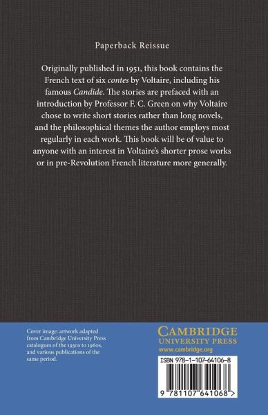 Originally published in 1951, this book contains the French text of six contes by Voltaire, including his famous Candide. The stories are prefaced with an introduction by Professor F. C. Green on why Voltaire chose to write short stories rather than long novels, and the philosophical themes the author employs most regularly in each work. This book will be of value to anyone with an interest in Voltaire's shorter prose works or in pre-Revolution French literature more generally.