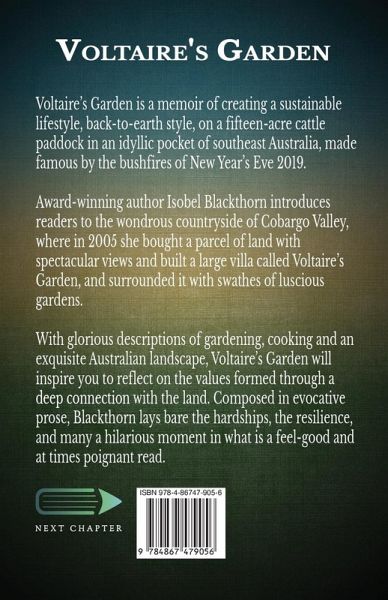 Voltaire's Garden is a memoir of creating a sustainable lifestyle, back-to-earth style, on a fifteen-acre cattle paddock in an idyllic pocket of southeast Australia, made famous by the bushfires of New Year's Eve 2019. Award-winning author Isobel Blackthorn introduces readers to the wondrous countryside of Cobargo Valley, where in 2005 she bought a parcel of land with spectacular views and built a large villa called Voltaire's Garden, and surrounded it with swathes of luscious gardens. With glorious descriptions of gardening, cooking and an exquisite Australian landscape, Voltaire's Garden will inspire you to reflect on the values formed through a deep connection with the land. Composed in evocative prose, Blackthorn lays bare the hardships, the resilience, and many a hilarious moment in what is a feel-good and at times poignant read.