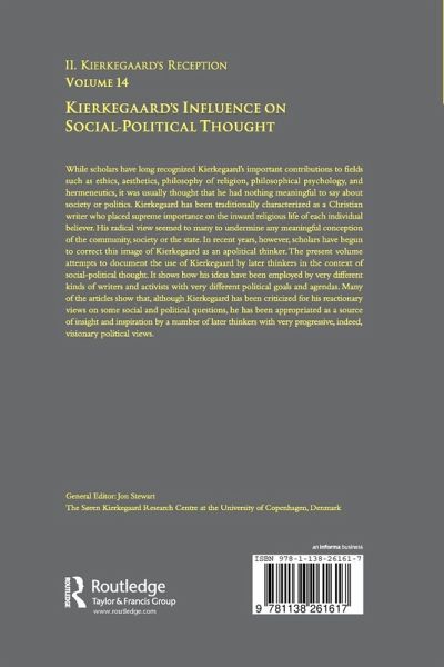 Kierkegaard has been traditionally characterized as a Christian writer who placed supreme importance on the inward religious life of each individual believer. His radical view seemed to many to undermine any meaningful conception of the community, society or the state. In recent years, however, scholars have begun to correct this image of Kierkegaard as an apolitical thinker. The present volume attempts to document the use of Kierkegaard by later thinkers in the context of social-political thought. It shows how his ideas have been employed by very different kinds of writers and activists with very different political goals and agendas. Many of the articles show that, although Kierkegaard has been criticized for his reactionary views on some social and political questions, he has been appropriated as a source of insight and inspiration by a number of later thinkers with very progressive, indeed, visionary political views.