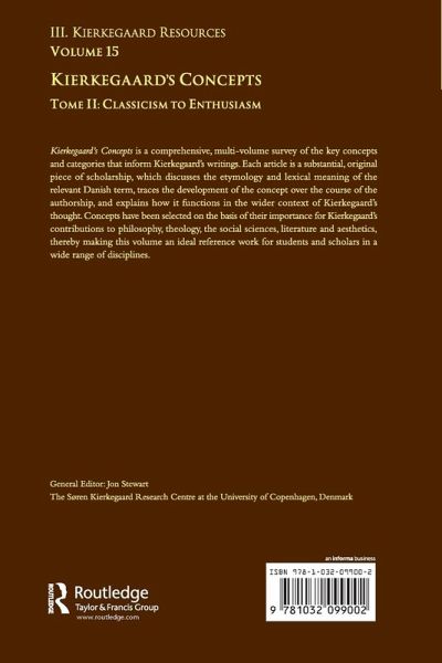 Kierkegaard's Concepts is a comprehensive, multi-volume survey of the key concepts and categories that inform Kierkegaard's writings. Each article is a substantial, original piece of scholarship, which discusses the etymology and lexical meaning of the relevant Danish term, traces the development of the concept over the course of the authorship, and explains how it functions in the wider context of Kierkegaard's thought. Concepts have been selected on the basis of their importance for Kierkegaard's contributions to philosophy, theology, the social sciences, literature and aesthetics, thereby making this volume an ideal reference work for students and scholars in a wide range of disciplines.