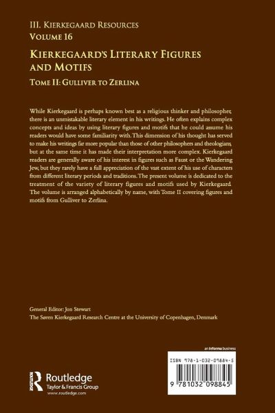 While Kierkegaard is perhaps known best as a religious thinker and philosopher, there is an unmistakable literary element in his writings. He often explains complex concepts and ideas by using literary figures and motifs that he could assume his readers would have some familiarity with. This dimension of his thought has served to make his writings far more popular than those of other philosophers and theologians, but at the same time it has made their interpretation more complex. Kierkegaard readers are generally aware of his interest in figures such as Faust or the Wandering Jew, but they rarely have a full appreciation of the vast extent of his use of characters from different literary periods and traditions. The present volume is dedicated to the treatment of the variety of literary figures and motifs used by Kierkegaard. The volume is arranged alphabetically by name, with Tome II covering figures and motifs from Gulliver to Zerlina.